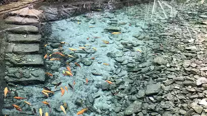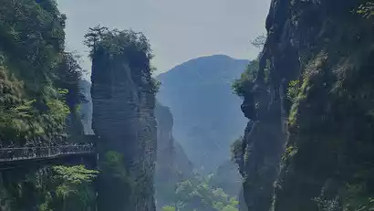 Then we arrived at Lingyan Scenic Area. The plank road is surrounded by beautiful mountains and clear waters. Here we can visit Longbi Cave and go deep into Wolong Pond. The water of Wolong Pond is clear and goldfish swim in it, as if floating.