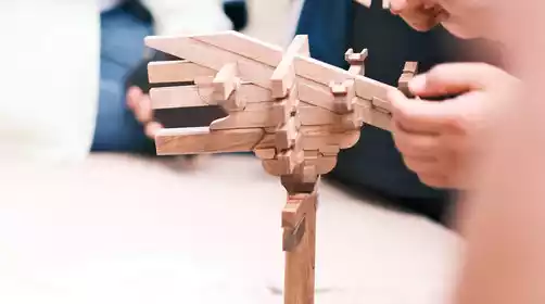 Tourists' special experiences: Understanding the past and present | Comparing ancient and modern styles; Working together | Replica Tang Dynasty bracket sets