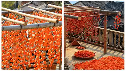 We arrived at Jigongjian around noon. Let's have lunch in the village. In late autumn, the colorful mountains of Huizhou are ablaze with color, creating a picturesque scene. Jigongjian, located 700 meters above sea level, is frost-free year-round. Its acidic soil gives the persimmons there a sweet flavor unlike any other. Because the persimmons are shaped like lanterns, they are known locally as "lantern persimmons." We strolled around, taking photos, and experiencing the unique charm of the Persimmon Village in southern Anhui during autumn.