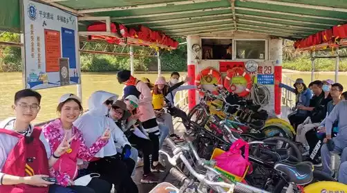 After a satisfying meal and a rest, we'll explore the nearby strawberry farms and vineyards, allowing us to pick some if we have time (strawberries cost around 30 yuan per jin in February and March, mainly from the farms). Our cycling group will continue, shaded by trees along the coast and enjoying a gentle breeze as we pass through bamboo and lychee groves. During our ride, we'll also experience water transportation across the Zengjiang River—a ferry. After queuing up to push our carts onto the ferry, we'll get up close and personal with the Zengjiang River, crossing from its west bank to its east.