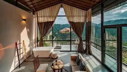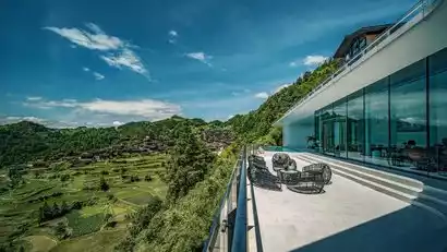Longtang Mountain House was designed and meticulously constructed by the famous designer Mr. Meng Fanhao. It consists of 8 individual guest rooms and public areas such as a restaurant and an infinity pool. It is built along the cliff and relies on Longtang's unique Miao cultural resources. It has a superior viewing location and luxurious facilities and equipment. The full-length viewing glass and viewing platform allow you to enjoy the panoramic view of the layered terraces and the misty Miao village.