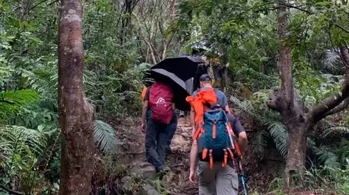 Arriving at the trailhead, the team leader took everyone to do warm-up exercises and then officially set off to climb the mountain.