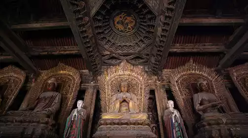 Liang Sicheng once said that Ying County had three treasures: the wooden pagoda, the Tiangong caisson, and the "disheveled" lion. The latter two are hidden in this little-known temple. Although only the main hall remains, nestled in the ruins that resemble a construction site, the stunning Jin Dynasty caisson and Tiangong pavilions hidden within are sure to amaze you, and you can even take photos.