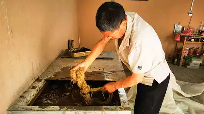 In this unassuming little museum, we'll witness the birth of a piece of paper. The raw material for papermaking is entirely derived from the bark of the paper mulberry tree (scientifically known as the paper mulberry tree) found in the Qinling Mountains. To collect this raw material, the Qiliang people traversed nearly every valley along the northern foothills of the Qinling Mountains. As a papermaking base, they maintain friendly relations with the local mountain dwellers. The process involves peeling the bark, soaking it in water, soaking it in ash water, steaming it, washing it, removing it, stamping it, shaking it, plucking it, soaking it in water, washing it, stamping it, cutting it, pounding it, beating it, making it into paper, pressing it, drying it in the sun, saving water, and finally peeling it off. Even more remarkable is the fact that giant panda feces are transformed into valuable material here, with the ingenious craftsmen using the bamboo fibers to make paper for human use.