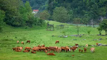 The Shizigou Ranch in Liuba County is located in Zhakou Shiyingpan Village, Liuhou Town, at the foot of Zibai Mountain in Liuba. It is said that this was the place where Zhuge Liang's troops grazed their horses during the Three Kingdoms period. Coming here, you will feel refreshed and relaxed, away from the hustle and bustle and close to nature. There are no tall buildings, and all you see are endless grassland hillsides and leisurely cattle and sheep, as if they were a series of oil paintings jumping into your eyes.