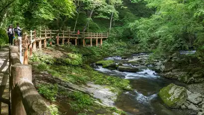 Legend has it that fairies gather at Yunv Peak, a peak that, from afar, resembles a graceful young woman, changing her attire with the changing seasons. The dense primeval forests of Yunv Peak obscure the sky, blocking out the sun. Trees grow among the rocks, and the trees reflect the rocks. Walking along the Yudai River, one can experience the scene described in ancient poetry: "The bright moon shines among the pines, and clear springs flow over the rocks." The Yuzhutan River is another jade bracelet worn by fairies. Jade in this world adorns the wrists of beautiful women. The jade bracelets here may be admired from a distance, but not touched.