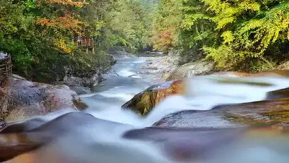 After breakfast, we'll transfer to a small car and head to Eighteen Moon Lake, stopping at convenient locations to explore. The road winds through towering mountains, and when swirling clouds meet vast expanses of crimson foliage, what a breathtaking sight! Pearl Valley, approximately 3.5 kilometers long, is dotted with 18 waterfalls and pools, creating a truly spectacular waterscape, one of the world's most breathtaking. The Pearl Valley's riverbed is a monolithic granite mass, and the pools, large and small, resemble a long string of pearls. The cascading waterfalls along the gully resemble a curtain of pearls. Stepping into Eighteen Moon Lake is like wandering through a painting, captivating and captivating. We'll have plenty of time to explore.