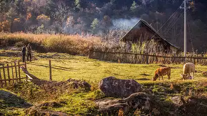 Today, we'll continue our hike along the Tangluo Trail. Wake up early in the morning in the picturesque old town, enjoy breakfast, and immerse yourself in the slow pace of life. Afterward, we'll pack up and depart this secluded paradise for a hike through Walnut Ping primeval forest, a paradise for hikers, offering close-up views of the pristine natural scenery, lush forests, and crisscrossing rivers.