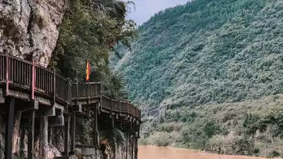 The Mingyue Gorge Ancient Plank Road, the key to the Shu Road, is the only passage connecting the north and south. Over thousands of years, people have carved out six ancient and modern roads to open up the Shu Road. It's truly a museum of Chinese transportation history. The scene of the burning plank road in "Romance of the Three Kingdoms" was filmed here. Li Bai's lament, "The Shu Road is as difficult as climbing to heaven," originates here.
