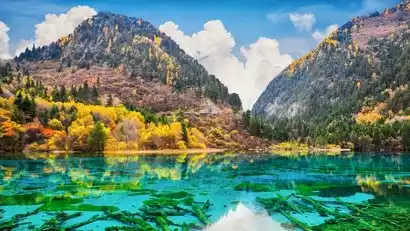 In autumn, Jiuzhaigou gradually reveals its true charm. Leaves sway, ripples gently ripple, and algae and the gurgling water dance the graceful rhythm of time, creating a melody of tranquility and elegance. This scenery has been praised as "unearthly beauty." The area is rich in flora and fauna, with pristine forests home to over a dozen rare and precious wildlife, including giant pandas. From afar, towering peaks and up close, crystal clear waters, combined with the cultural landscape of Tibetan wooden houses, prayer flag drying racks, trestle bridges, mills, and Tibetan customs and legends, Jiuzhaigou feels like a fairytale. Jiuzhaigou's main valley is shaped like a "Y," consisting of three gullies. You can explore Rize Valley and Zechawa Valley in sequence, and enjoy lunch and a rest at the Nuorilang Central Station.