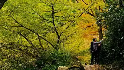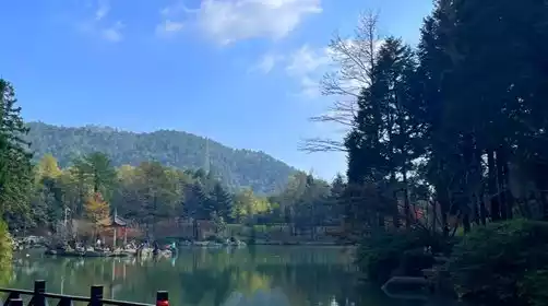 We arrived at Shizi Pants around 11:30 AM. After disembarking, our guide led a brief warm-up exercise before we began our ascent. Along the way, golden ginkgo trees dotted the landscape, dotted with red flowers, golden pine trees stood tall, and fallen leaves drifted in the wind. The golden autumn in Siming Mountain resembled a painter's palette, a vibrant palette of colors. Walking through the mountains felt like wandering through a painting. We stopped at Yangtian Lake for lunch and a short break, where we could pose for photos. Afterward, we continued our autumn exploration.