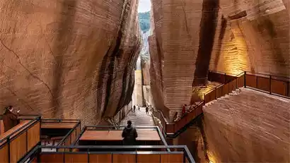 6. Arrive at Little Chibi Dadu Rock, walk along the natural stone corridor by the river, gaze at the Danxia cliffs, and experience the evening by the mountains and waters of southern Zhejiang.