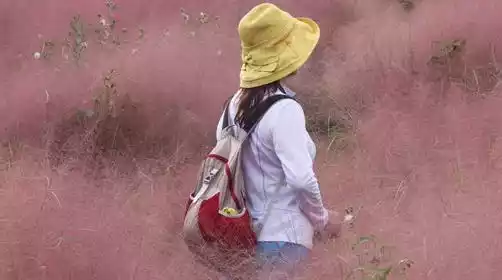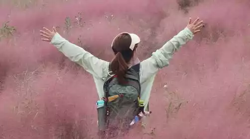 Arriving at the hike's starting point, Dongshan Village, nestled in the Chijin Mountains of Tangxi Town, the village is nestled against the mountainside, also known as Yuegong Mountain. The village boasts a well-proportioned layout of houses, dating back to the Song Dynasty. The village exudes a natural and quaint atmosphere. After gathering our gear, we ascended the Yuegong Mountain Trail, passing through the reservoir and the village. On the hillside ahead, 300 acres of pink muhly grass were in full bloom, with clouds of pink drifting in the wind, forming a vibrant sea of flowers. Here, tourists rested, grabbed a snack, and took photos.