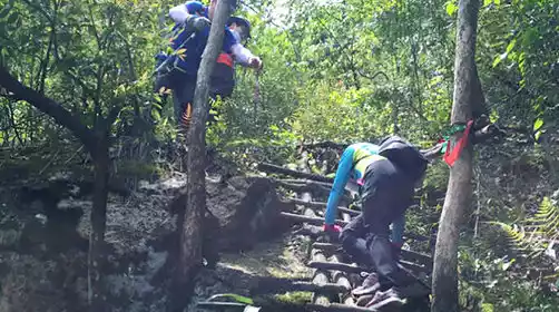 Arrive at the starting point of the hike, Henglu Village, around 10 AM. After packing your gear and thoroughly warming up for a comfortable hike, follow your guide for warm-up and stretching before embarking on a day of hiking! Bamboo trees sway in the breeze, wooden bridges span mountain streams, and wooden ladders crisscross the mountain streams, all leading to the summit of Nanyu Mountain (1,038 meters above sea level).