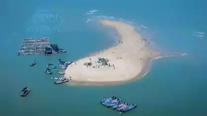 1. Arrive at Dongshan Island around 11:00 AM. First stop: Double-Sided Sea. A small, isolated island, Nanyu, emerges from the ocean. At low tide, a sandy beach "channel" appears, but at high tide, the channel disappears, leaving the ocean. The green lighthouse here was the filming location for the movie "Your Wedding."