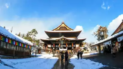 After lunch, visit the 1,400-year-old Zenko-ji Temple. Known as the "Temple of the Common People," Zenko-ji Temple is not affiliated with any particular Buddhist sect and welcomes everyone equally. The temple also houses the One-Kō Sanzon Amida Nyorai statue, believed to be one of Japan's oldest Buddhist statues.