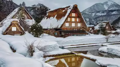 After breakfast, we'll depart for the fairytale world of Shirakawa-go. Shirakawa-go's unique thatched-roof architecture, a UNESCO World Heritage site, evokes both the rustic charm of Japan and the romantic, medieval-style peaked huts of Europe. On a winter night, the village, dotted with lights, nestled amidst the snow, creates a truly fairytale-like atmosphere.