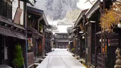 At night, you will stay at a famous hot spring hotel in the Takayama area and enjoy the twilight snow in the mountains of central Japan.