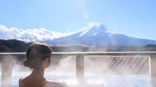 Go to Mount Fuji in the evening and stay at a hot spring hotel
