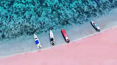 We'll visit another highlight of this trip, the Pink Beach, where tourists can stroll along the pink sand and splash in the ocean! Indonesia boasts a unique pink beach in Southeast Asia, boasting clear water and fine sand. The beach's pink color is attributed to the abundance of red coral on the seabed. Years of erosion by the sea have created a rich pink sand, which washes onto the shore. Over time, the beach is filled with red coral sand, giving it a vibrant pink hue. Taking photos here will captivate your senses from every angle!