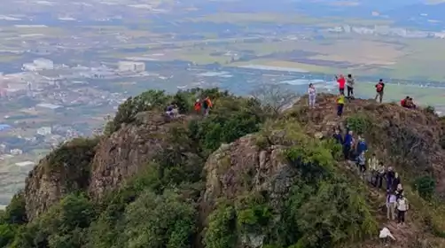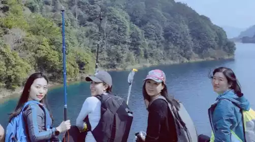 We will arrive at Hutou Mountain around 11:30. You will need to climb over a large rock by rope. Please pass through in an orderly manner under the arrangement of the team leader.