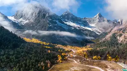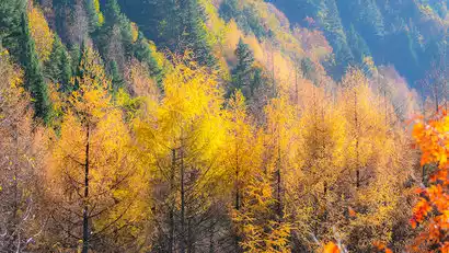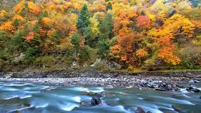 Bipenggou in autumn can be called the "forest and snowfield" of the west. This is also the same forest sea as Douyin. In the gully, you can hike and enjoy the beautiful scenery along the way. The stream flows up and down between the ice sheets, and the snow-capped mountains are set against the colorful forests. Hurry up and pick up your phone, open Douyin, press the shutter, and sit back and receive red hearts and likes.