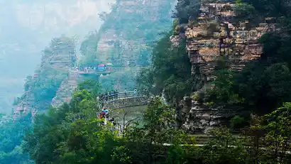 Next, we'll take you on a thrilling journey through the air and admire the breathtaking scenery of the towering peaks – the Yuntaishan High-Altitude Glass Plank Road (visit fee is at your own expense). (If you're not physically fit, you can take the cable car up and down the mountain at your own expense, with a round-trip fee of 120 yuan.)