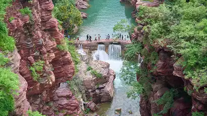 In the afternoon, we transferred to a scenic shuttle bus and entered the core tourist area. We first arrived at Hongshi Gorge, a breathtaking jewel of Yuntaishan's landscapes. Entering the scenic area, we never turned back. The canyon stretches 2,000 meters and typically takes 1.5-2 hours to explore.