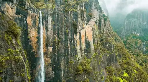 Dalongqiu Waterfall is a scenic spot in Yandang Mountain, Zhejiang Province. It is considered one of China's four great waterfalls, along with Huangguoshu Waterfall in Guizhou, Hukou Waterfall on the Yellow River, and Diaoshuilou Waterfall in Heilongjiang. Dalongqiu resembles a raging silver dragon swooping down from mid-air, creating a thunderous roar that shakes the heavens and the earth, a breathtaking spectacle. On a clear winter day, the waterfall cascades down from mid-air. Dalongqiu is particularly noteworthy for its dramatic drop of over 190 meters. The waterfall originates at Baigangjian, flows through Longqiubei, and cascades down from Lianyun Peak, resembling the Milky Way cascading down from the sky. It is a truly spectacular sight.