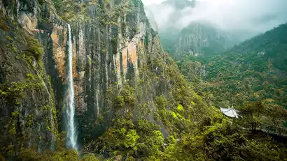 The Square Cave is located on the west side of the Lingyan Scenic Area. There are three dripping springs in the cave, and the accumulated water is drinkable. There is a square cave plank road over a hundred meters long at the entrance of the cave. This plank road is also called the "Silver Cliff Sky Corridor". There is a square cave in the plank road carved along the natural rock, so it is called the Square Cave Plank Road. The plank road has scenic spots such as the Knife Cave, the Cloud Bridge, the Upside-Down Golden Bell, the Plum Blossom Cave, and the Juxian Pavilion. The Square Cave Plank Road is very steep and many people dare not try it. In recent years, railings have been built to give people a sense of safety. If you go there on a rainy day, you can see the wonders of misty rain, which is a unique sight. The Square Cave is a scenic spot with unique characteristics in Yandang Mountain. It has a suspension bridge, pavilions, cave temples, and trails on the edge of the cliffs. You can also see many little swallows. The scenery is beautiful and the scenery is endless.