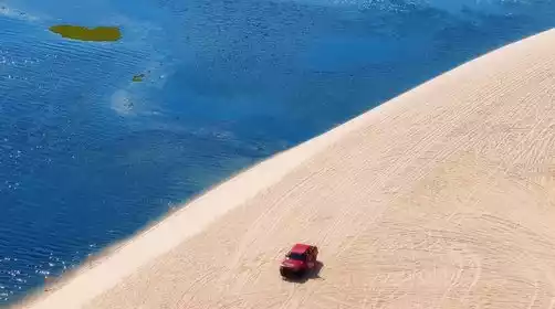 Then we went to the Red Sand Dunes, which is a red sand dune close to the coast. The sand is relatively soft and very comfortable to walk on. There are some dense woods on the north and west sides of the dunes. When taking pictures, you can capture the dunes, the coast and the woods at the same time, with the sea on one side and the desert on the other.