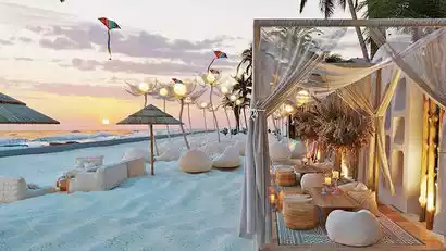After checking in at our Mui Ne hotel, we'll head to the Henna Beach Club (one soft drink included). This chill beach bar also boasts a cafe, a farm experience area, photo spots, and a mini-zoo. A rainbow slide that seems to soar into the sea creates an immersive entertainment experience. In the evening, enjoy the occasional band performances and sit on the beach, watching the holiday lights gradually illuminate in the afterglow of the sunset – the perfect time to soak in the magical atmosphere of this "virtual paradise."