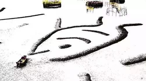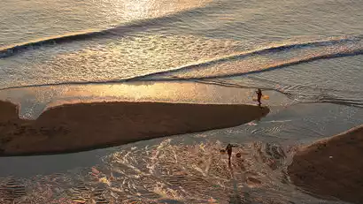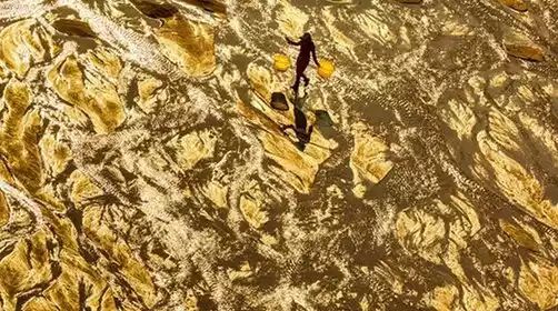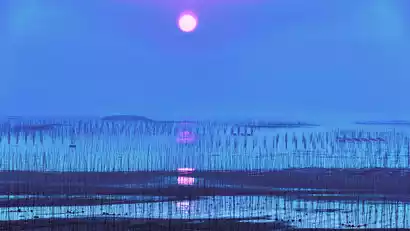 As the sun sets, we photograph the sunset at Oracle Beach. The gullies carved into the mudflats resemble oracle bone inscriptions, and there are colorful fences on the side. The red sun slowly sets in the distance, casting a shadow on the sea. How magnificent it must be.