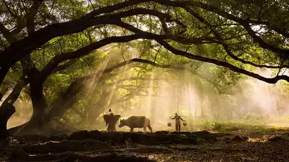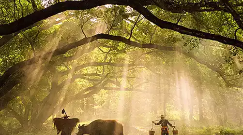 We then went to Yangjia Creek for filming. We arranged a smoke scene under the ancient banyan tree. An old She woman was carrying a load on her shoulders, and a grandfather was pulling a cow to help us film the classic "old farmer pulling a cow" scene.