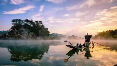 We will get up early in the morning and head to the Nanxi River to start photographing the [Nanxi River Fishing Lights] before sunrise. We will arrange for the local fishermen to prepare in advance, and all teammates will follow the leader to find a good angle to shoot. The boats, fishermen, ospreys, and lights will all merge with the mountain shadows. As the sun rises higher, we will continue our journey.