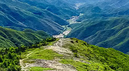 Arrive at Yunfeng Temple around 12:00, hike along the reservoir, cross the tunnel, then walk down the mountain along the bamboo forest path, walk along the stream, pass by a series of pools and waterfalls, and cross many ancient trails. Finally, go down the mountain along the Ninghai National Hiking and Fitness Trail to the ancient village.