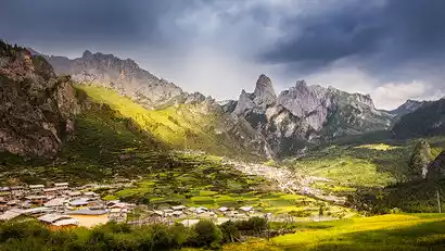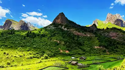 After breakfast, we left camp and climbed slightly through the valley before continuing our traverse downhill. Passing Dabianshi and Naizishan, we began to see some herders' houses. This is Anziku Pasture, home to a large number of Zhagana herders. The mountains, meadows, and villages create a Shangri-La-like atmosphere. After resting in Anziku, we continued through the woods to camp on the meadow at the mouth of the canyon.