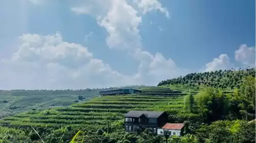 We walked out of the jungle and reached the mechanized farming road on the top of the mountain, crossed the tea plantation, and looked out at the open area on the top of the mountain. We rested and had lunch in due time.