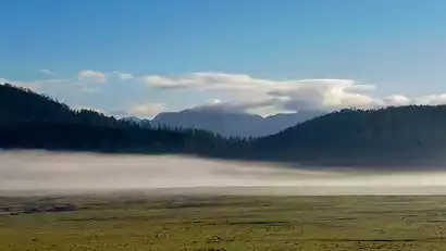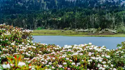 After breakfast at the camp, we packed up and headed back to Niru Village along a different route. After a gentle descent, we arrived at Shuo'e Pasture, where we quietly passed through primeval forest and azalea forests before reaching Dinglang Lake. After circling the lake halfway, we continued downhill, crossed a river valley, and arrived at our starting point for yesterday's hike. The scenery along the way varies with the season. In May and June, azaleas blanket the pasture, while in autumn, the landscape is a stunning display of golden blossoms.