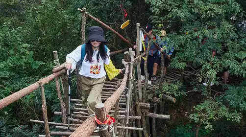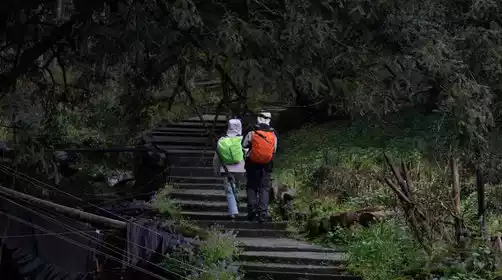 Winding up the stone steps, you'll be accompanied by mountain streams and waterfalls, passing through a fairytale-like thousand-year-old Torreya grandis forest and a small wooden bridge before entering a wild road. Don't rush to check in and take photos, this is just the entrance to the "fairyland"!