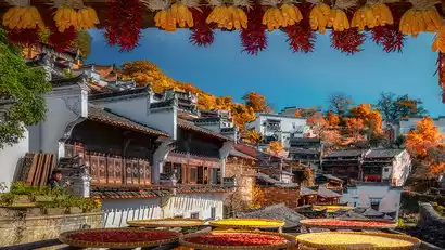 After waking naturally in the morning, you'll have plenty of time to explore the Huangling Scenic Area. Hundreds of ancient Hui-style dwellings are scattered across a 100-meter drop. Each house is filled with colorful harvest fruits, creating a spectacular autumn sun-drying spectacle. Stroll through the ancient village, checking in at the sun-drying work station, the post office, and the Huaxi Flower Street. Descend the mountain by cable car and return to Huangshan by bus.