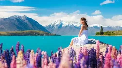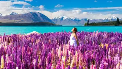 After lunch, we'll travel to the small town of Tekapo to explore Lake Tekapo. In this vibrant spring, numerous wildflowers, such as lupine, bloom vibrantly along the shores of Lake Tekapo, creating a vibrant palette of nature. The scenery is further enhanced by the backdrop of the azure sky and the snow-capped Southern Alps in the distance. Melting glaciers converge near the Shepherd's Church, flowing downstream into the milky blue Lake Tekapo. Every drop of water speaks of nature's grandeur and tranquility.