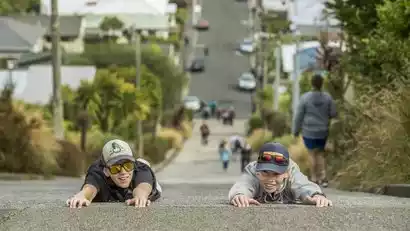 Baldwin Street is the steepest inhabited street in the world. It is short and straight, with a total length of 350 meters. The slope is 19 degrees, which means that the height increases by 1 meter for every 2.86 meters you walk. Climbing to the top of the street feels like climbing a mountain.