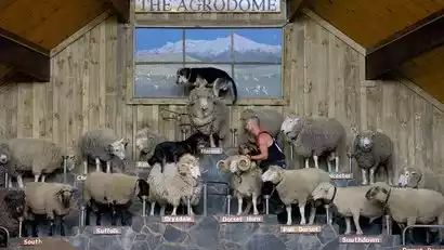 Agrodome Farm is New Zealand's largest tourist ranch. The ranch primarily raises sheep, beef cattle, dairy cows, red deer, sika deer, llamas, mules, horses, and ostriches. The ranch is privately owned and offers traditional New Zealand farm performances, including sheep shearing and sheepdog shows.