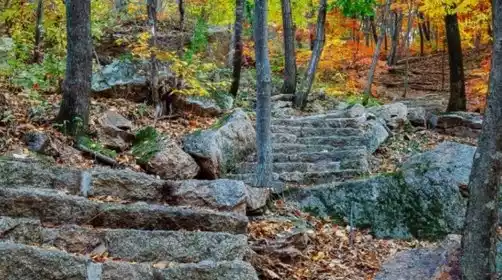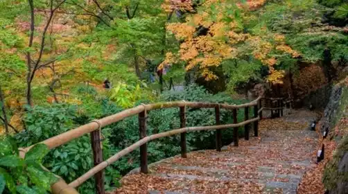 Passing the Mingshan Zhulin Temple, we arrived at the entrance of the ancient road. Then we continued along the Mingshan Ancient Road, where we saw small bridges, flowing water, and the autumn atmosphere.