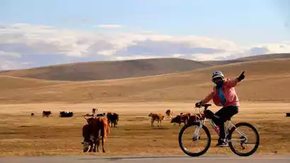 Today, we'll cycle along the Ergun River, the border between China and Russia, and enter the Ergun River wetlands. We'll also encounter the Hulunbuir Grasslands, considered one of the "world's most beautiful grasslands." We'll continue on to Shiwei, where boundless grasslands stretch on either side, and the sky stretches to the horizon. Shiwei, the birthplace of the Mongolian people, is separated from Russia by a bridge. Standing on the banks of the Ergun River, you can clearly see the villages and people of Russia across the river. Nestled between mountains and rivers, the small town of Shiwei was once named one of China's "Ten Most Charming Towns."