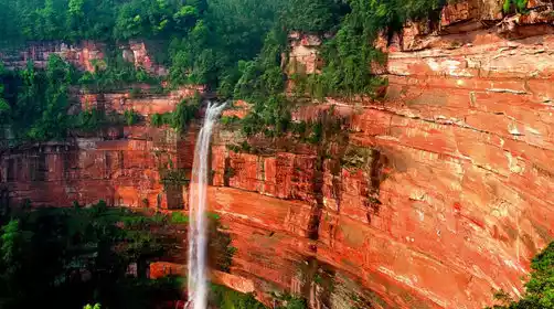 Located in the Danxia landform area, the Grand Waterfall, 76 meters high and 80 meters wide, is the world's tallest waterfall in the Danxia landform and the largest waterfall in the Yangtze River system. The renowned painter Liu Haisu hailed it as "The Beauty in the Empty Valley," and experts from the Chinese Academy of Sciences have hailed it as "The Wonder of China's Danxia Waterfall." Entering the tourist area, visitors can admire the Danxia landform, alpine waterfalls, and bamboo forests along the way. The Chishui Grand Waterfall, nestled at the valley floor, is quite spectacular. The Zhongdong Waterfall, located midway through the scenic area, is often overlooked. While not as high as the Grand Waterfall, it offers even greater beauty and allure. Other attractions include the Waterfall Viewing Platform, Longines Bay, Feihong Bridge, Yiwu Road, Xiantai Stage, and Dark Waterfall Rock, adding to the scenic beauty.