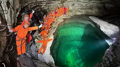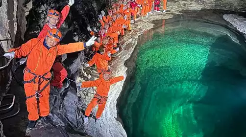We have specially arranged a unique cave via ferrata experience. Under the demonstration and explanation of the instructor, everyone will wear professional equipment, learn safety precautions and equipment usage, enter the Galaxy Cave, explore the cave, walk along the cave wall with a steel cable, and check in at the Emerald Heart of the Galaxy Cave.