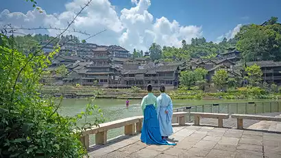 After lunch in Guiyang, we will gather at the designated location and board the bus. We will then check in and visit the Wujiang Village scenic area.