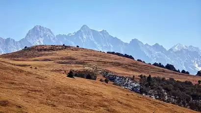 Laoyao Mountain is located on the southern slope of Haba Snow Mountain, high above the clouds on the banks of the Jinsha River. Hiking through lush pastures, you can overlook the Jinsha River flowing gently into Tiger Leaping Gorge, with views of Haba Snow Mountain to the north and Jade Dragon Snow Mountain to the south. The hike, with these two snow-capped mountains as its companion, is a truly fascinating experience. The scenery changes with each season. In April and May, azaleas bloom in abundance, creating a sea of pink flowers that complement the snow-capped mountain pastures. In June, the purple blossoms of southwestern irises sway in the breeze, creating a unique atmosphere of lush green pastures shrouded in mist. In autumn, the forest begins to color, creating a vibrant display of colors.